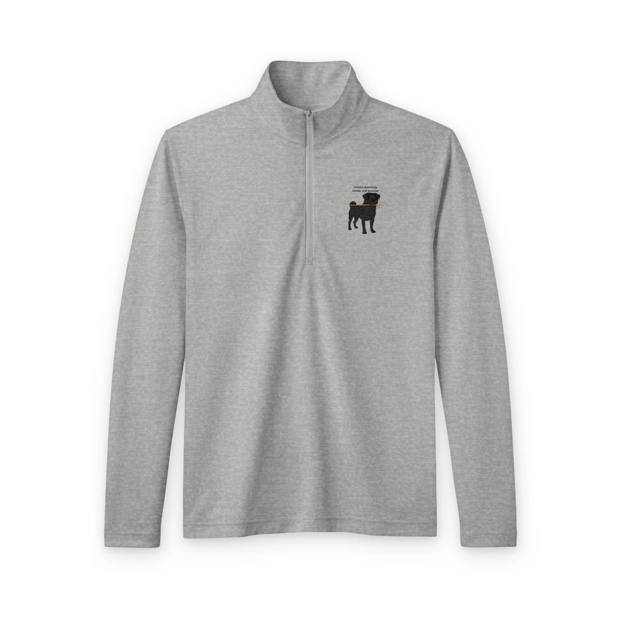 Look sharp and stay warm through back-to-back sessions, breakout rooms, and whatever Arctic tundra your facility manager calls a "comfortable working temperature." This lightweight quarter-zip layers cleanly over a dress shirt or stands on its own — polished enough for the keynote, practical enough for the commute home. Proudly branded with the Trident eLearning Services pug logo, because your outerwear should be as professional as your instructional design.